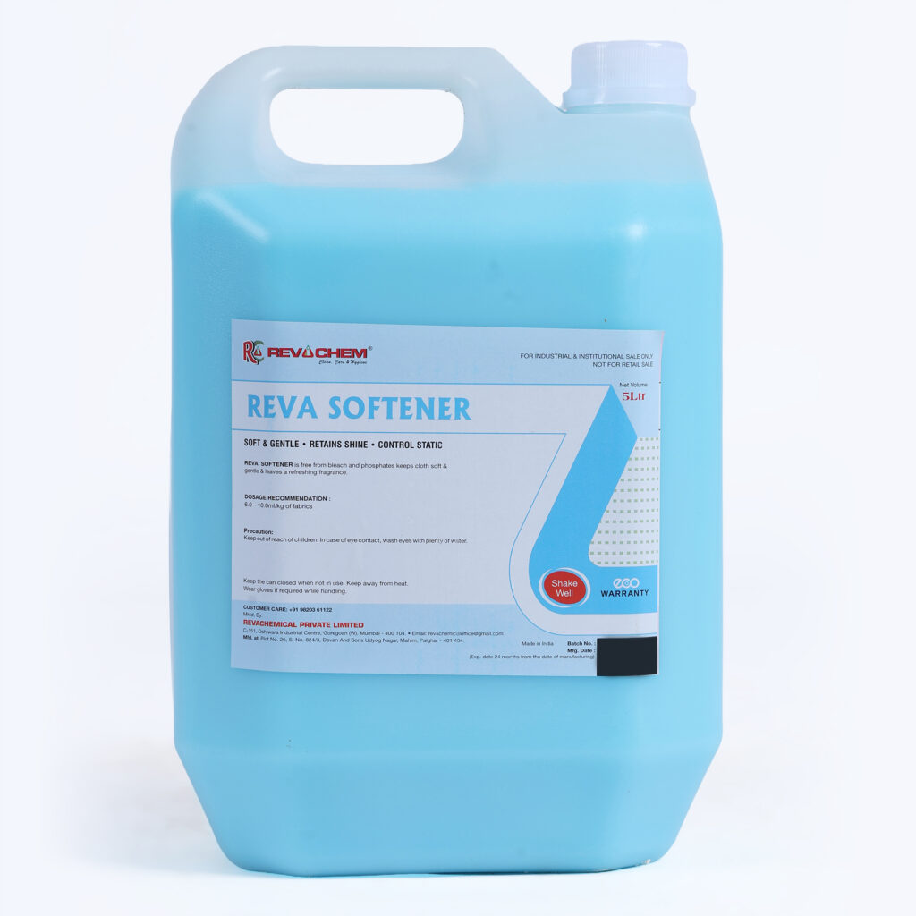 Why Reva Softner is a Premium Fabric Softener – Reva Softner stands out as a premium fabric softener due to its advanced formulation and consistent performance. It helps reduce friction between fibers, minimizing fabric wear and tear while improving overall fabric feel. The result is softer towels, smoother bedsheets, and more comfortable uniforms—essential for professional environments. The pleasant, long-lasting fragrance adds a fresh and hygienic feel to fabrics, enhancing guest satisfaction in hotels and maintaining a professional appearance in office and corporate settings. With proven formulation expertise, Reva Softner ensures reliable results wash after wash.
