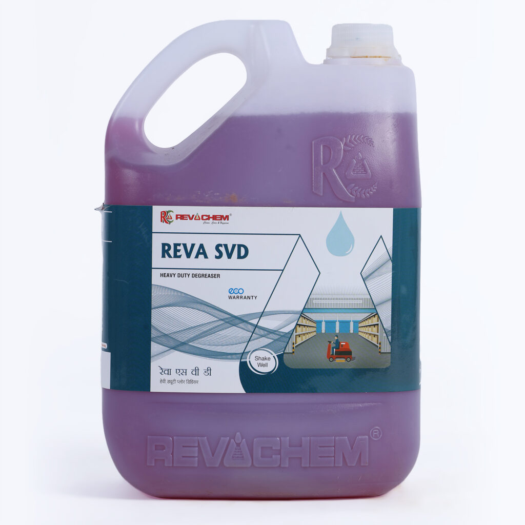 Benefits of Reva SVD Heavy Duty Acid Cleaner – Reva SVD offers multiple advantages for commercial cleaning operations. As a heavy duty acid cleaner, it delivers powerful stain removal while restoring surface appearance. The product works effectively as a commercial degreaser, cutting through oil, grease, and industrial dirt with ease. It improves hygiene standards, enhances floor safety by reducing slippery residues, and supports cost-effective maintenance due to its concentrated formulation. Reva SVD is suitable for periodic deep cleaning and pre-maintenance floor treatment, making it a dependable choice for professional housekeeping teams.